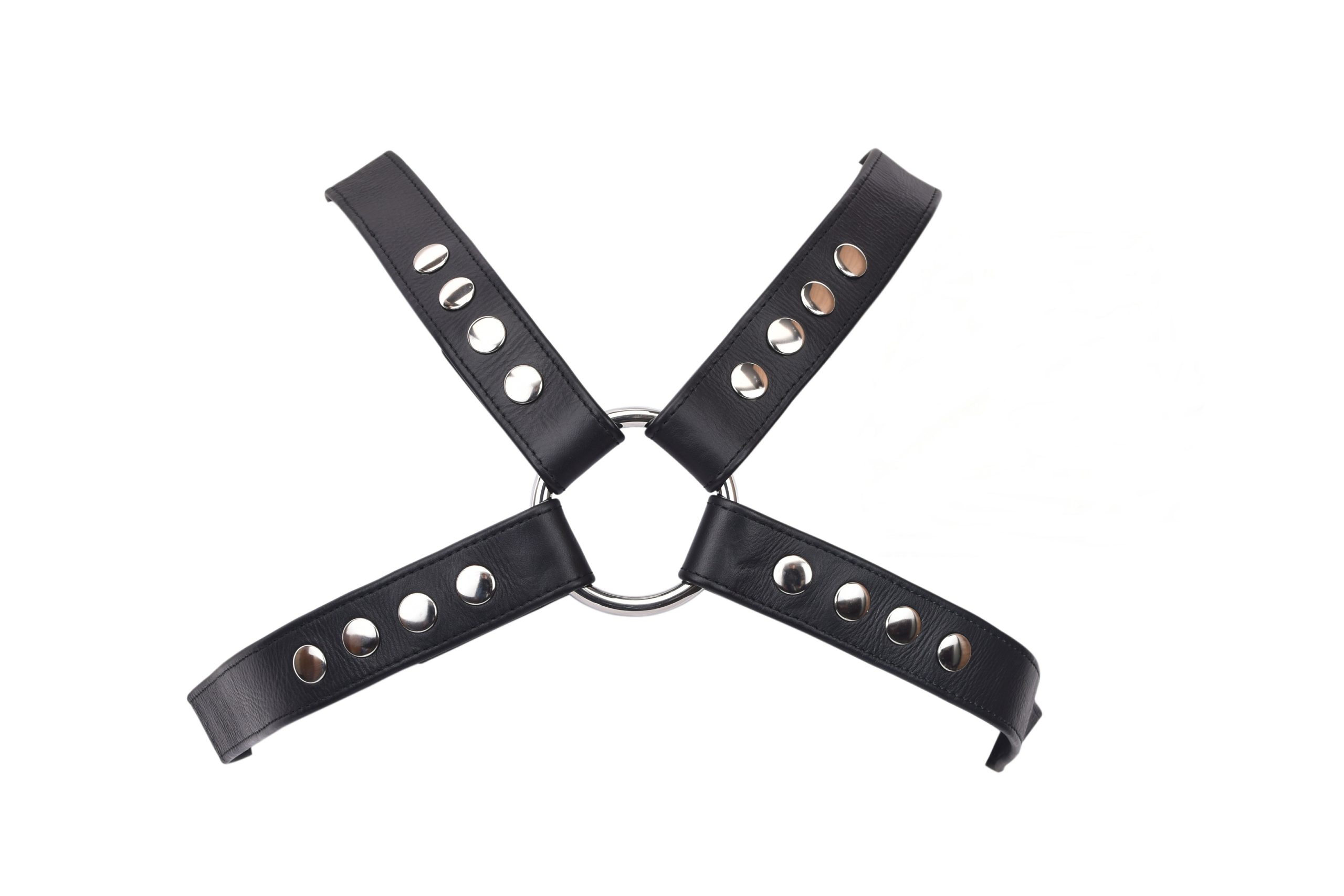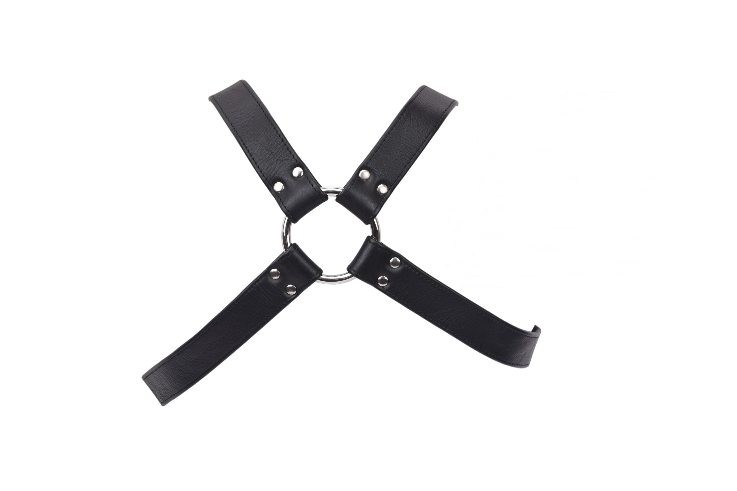Be the first to review “Black Leather Body Harness with Metal O-Ring”