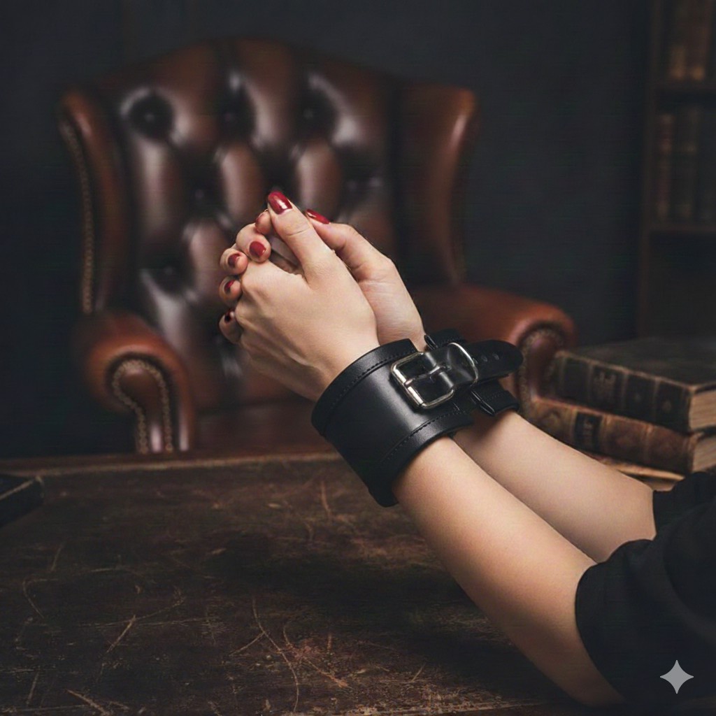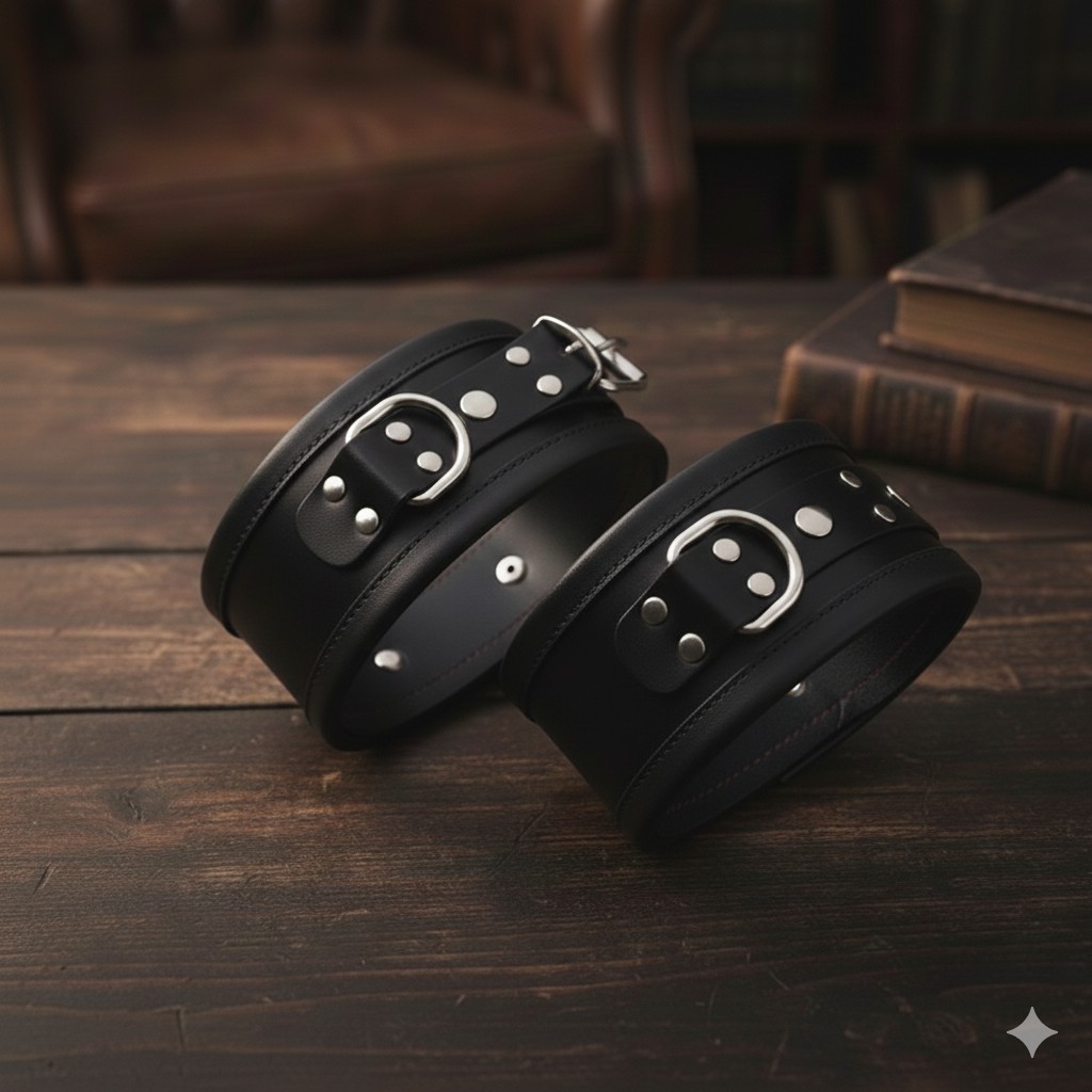 Black Leather Wrist Restraints – Heavy-Duty Adjustable Handcuffs with Reinforced D-Rings and Roller Buckles