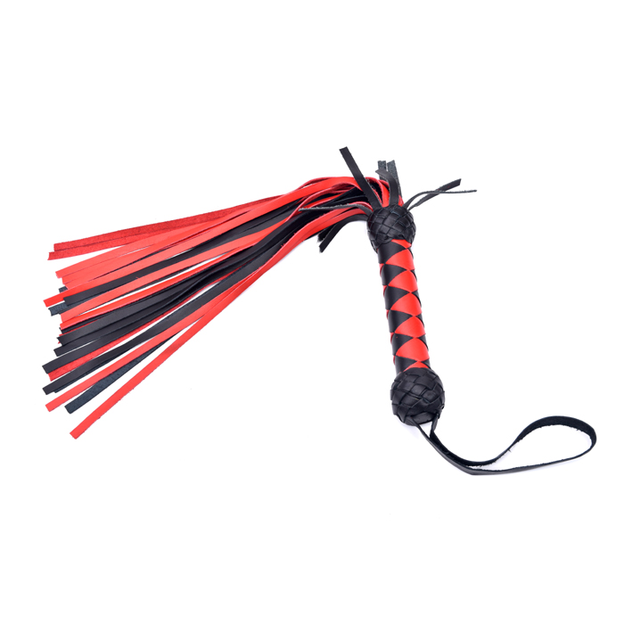 Black & Red Genuine Leather Bullwhip with Braided Handle & Wrist Strap