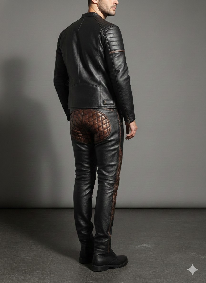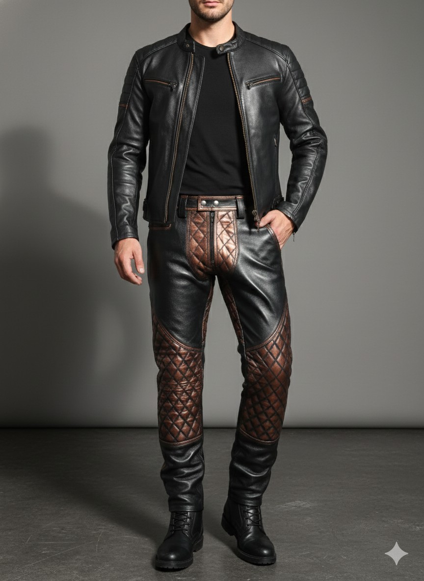Be the first to review “Bricks Padded Leather Pants – Jeans orange contrast waxy vintage look”