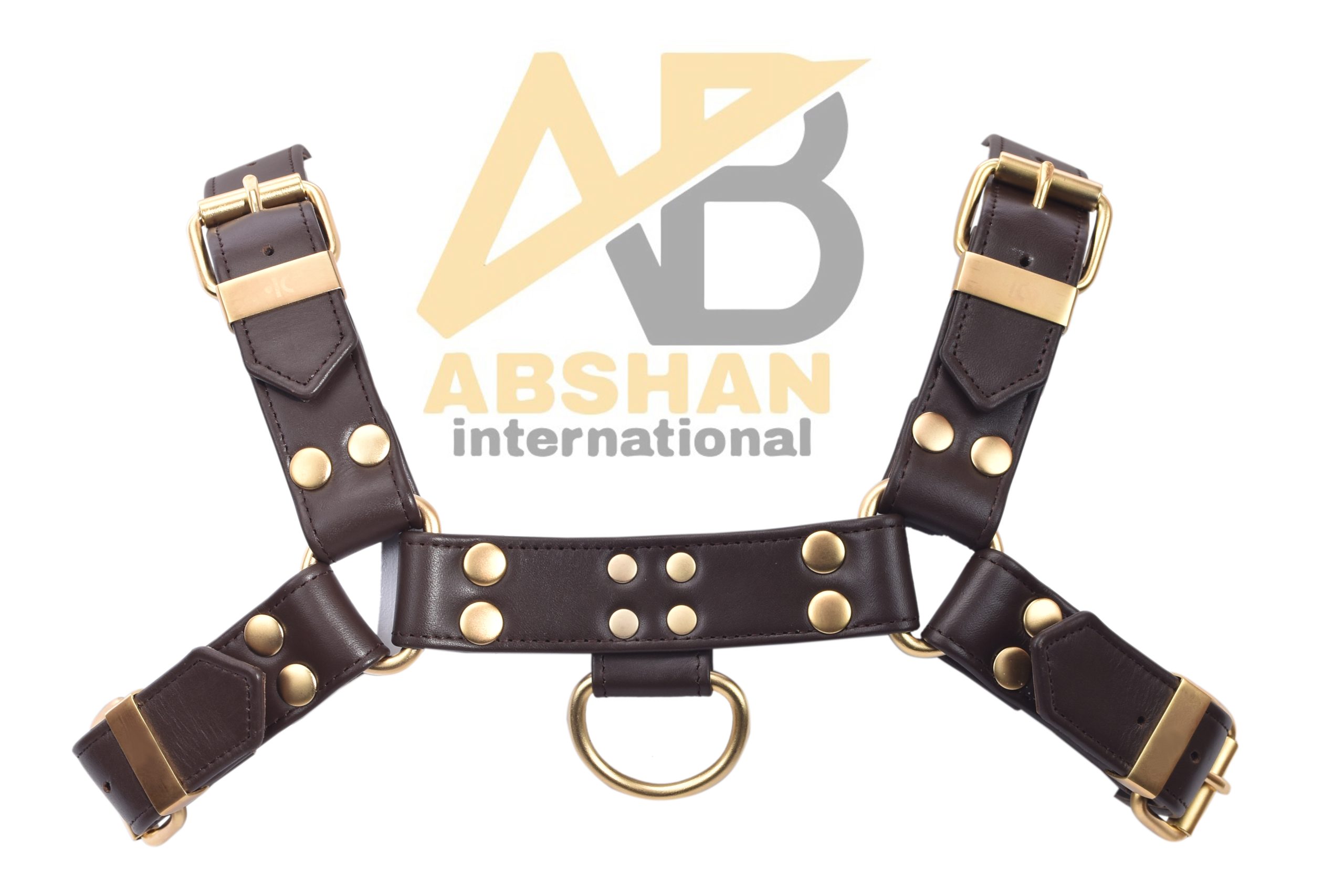 Elite 18K Gold Plated Leather Dog Harness | Luxury Brown Grain Leather | Designer Pet