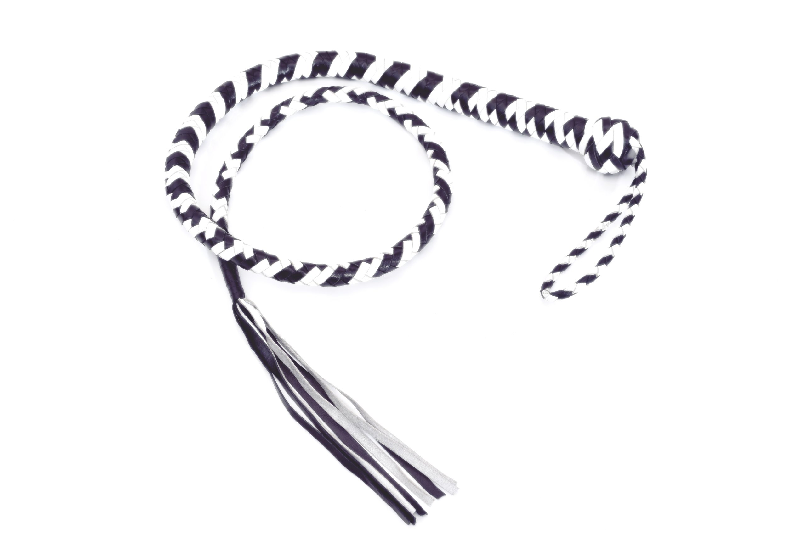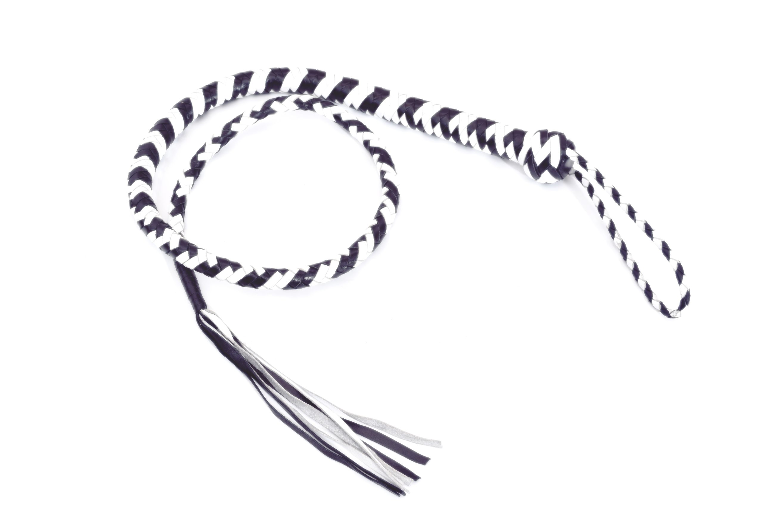 Handcrafted Black & White Leather Snake Whip – 4ft Genuine Leather Bullwhip –Two-Tone Braided Whip & Cracking