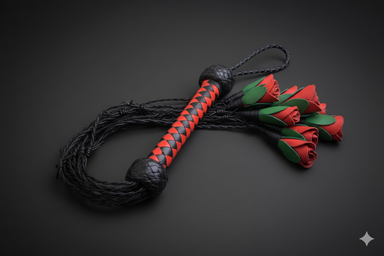 Be the first to review “Handcrafted Red & Black Diamond Pattern Leather Flogger/Whip”