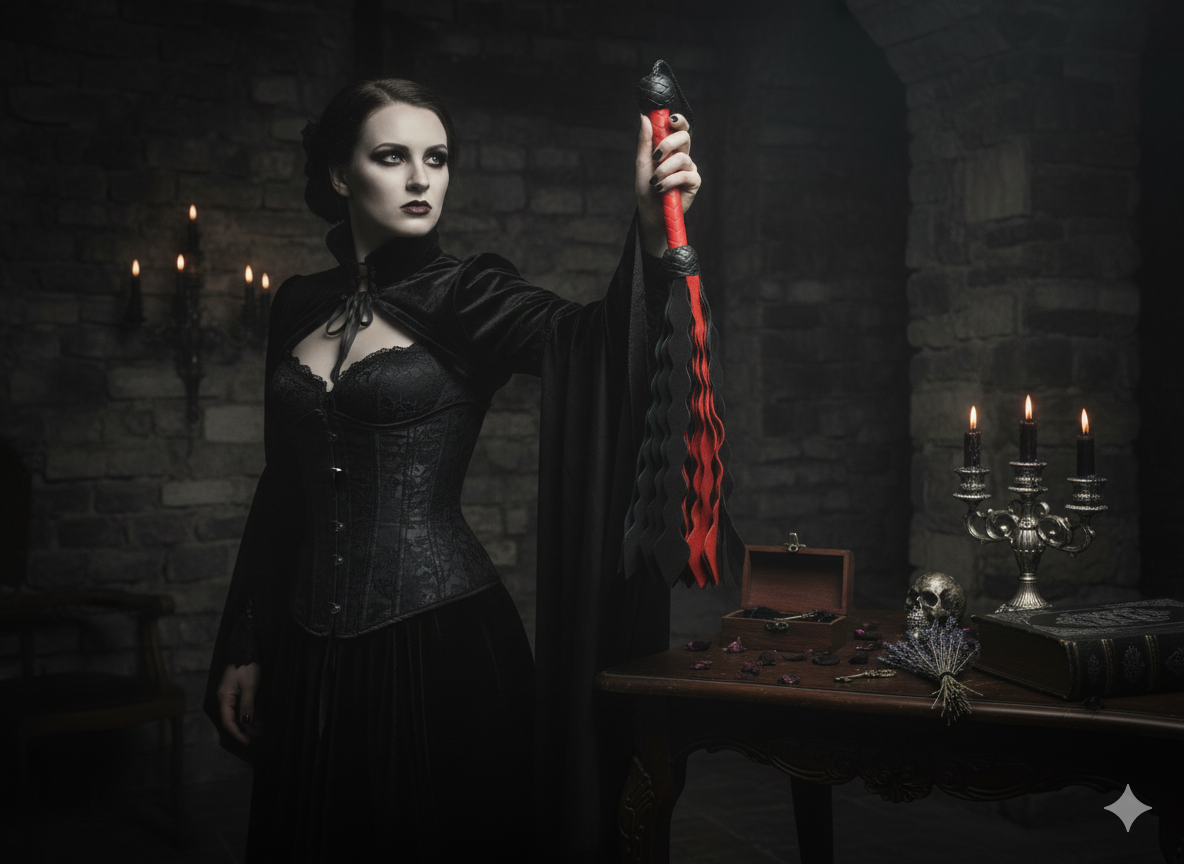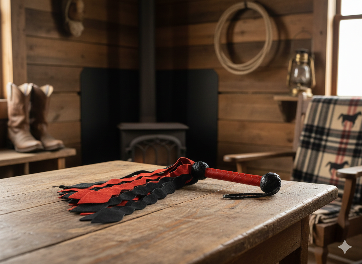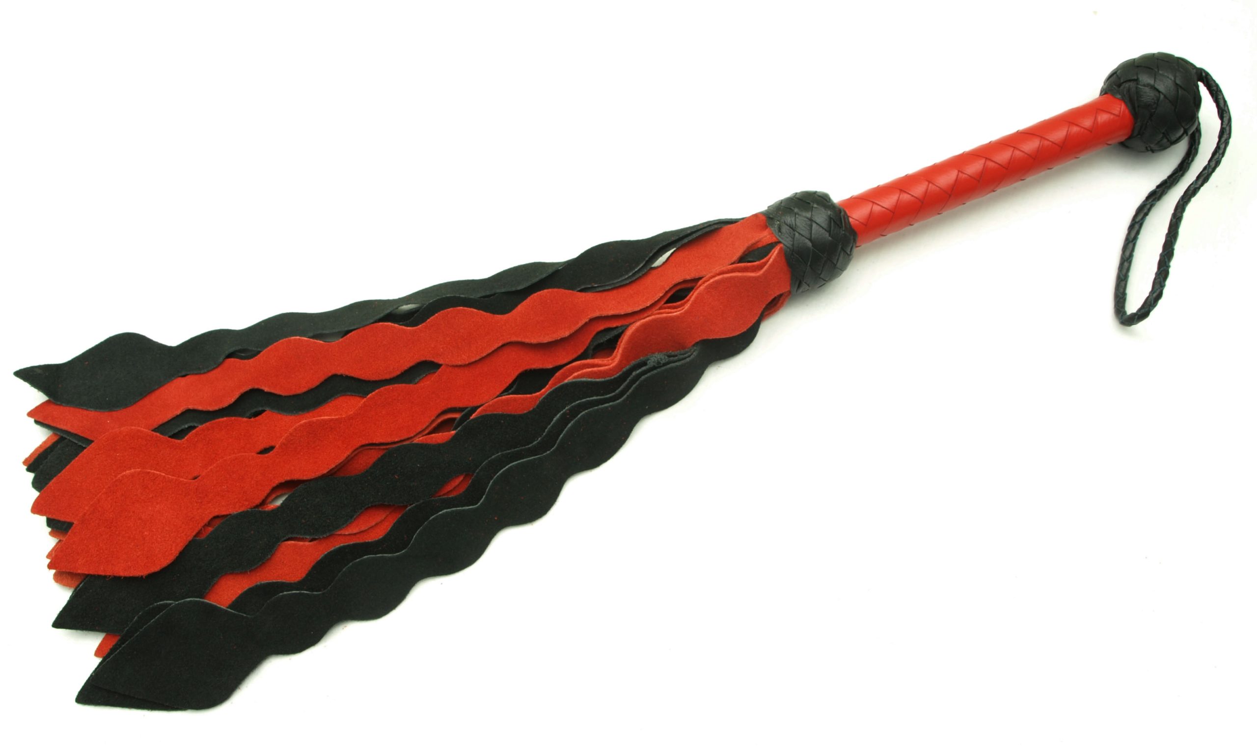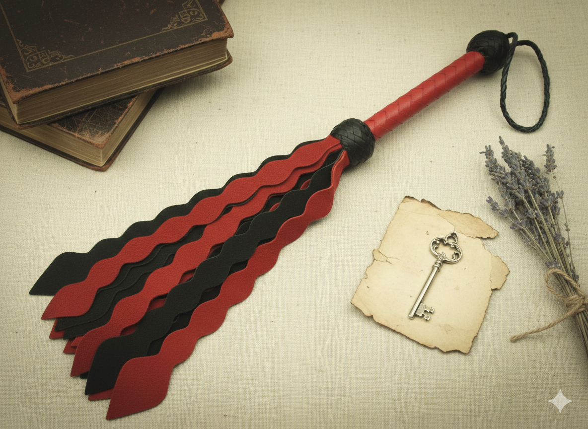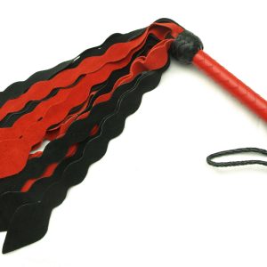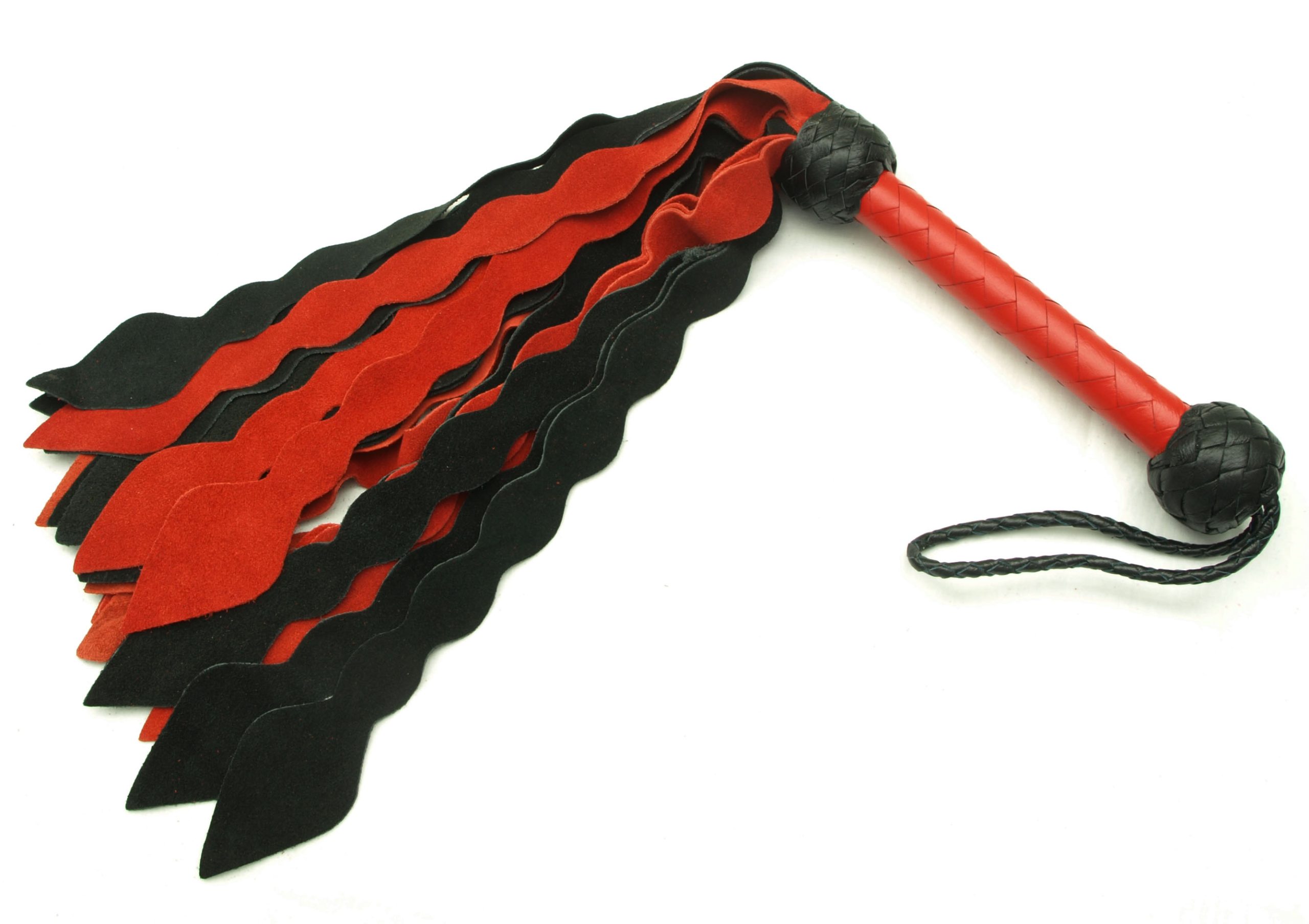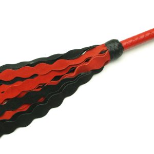 Luxury Red Black Cowhide Flogger, Handmade Leather Whip, Kink Play Tool