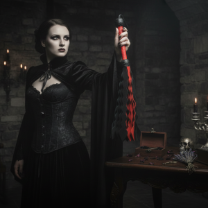 Be the first to review “Luxury Red Black Cowhide Flogger, Handmade Leather Whip, Kink Play Tool”