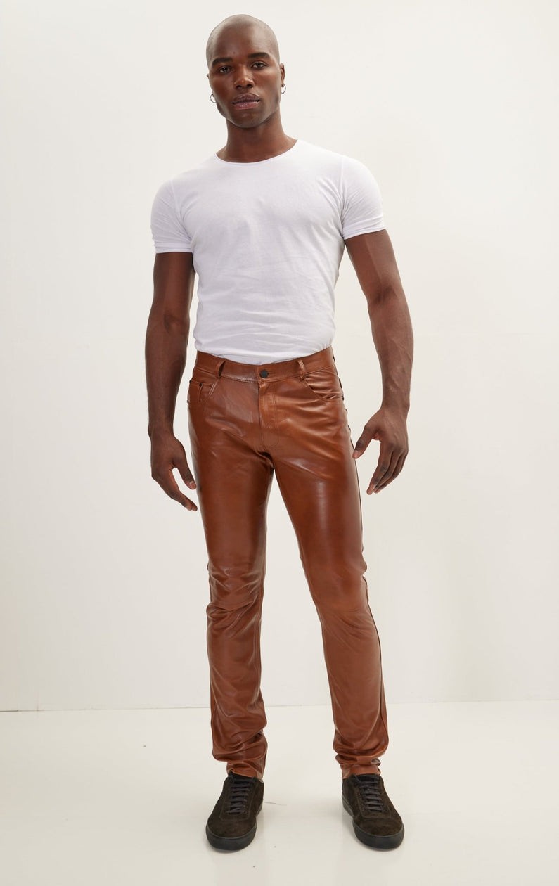 Men’s Brown Genuine Leather Pants – Slim Fit Classic Leather Trousers