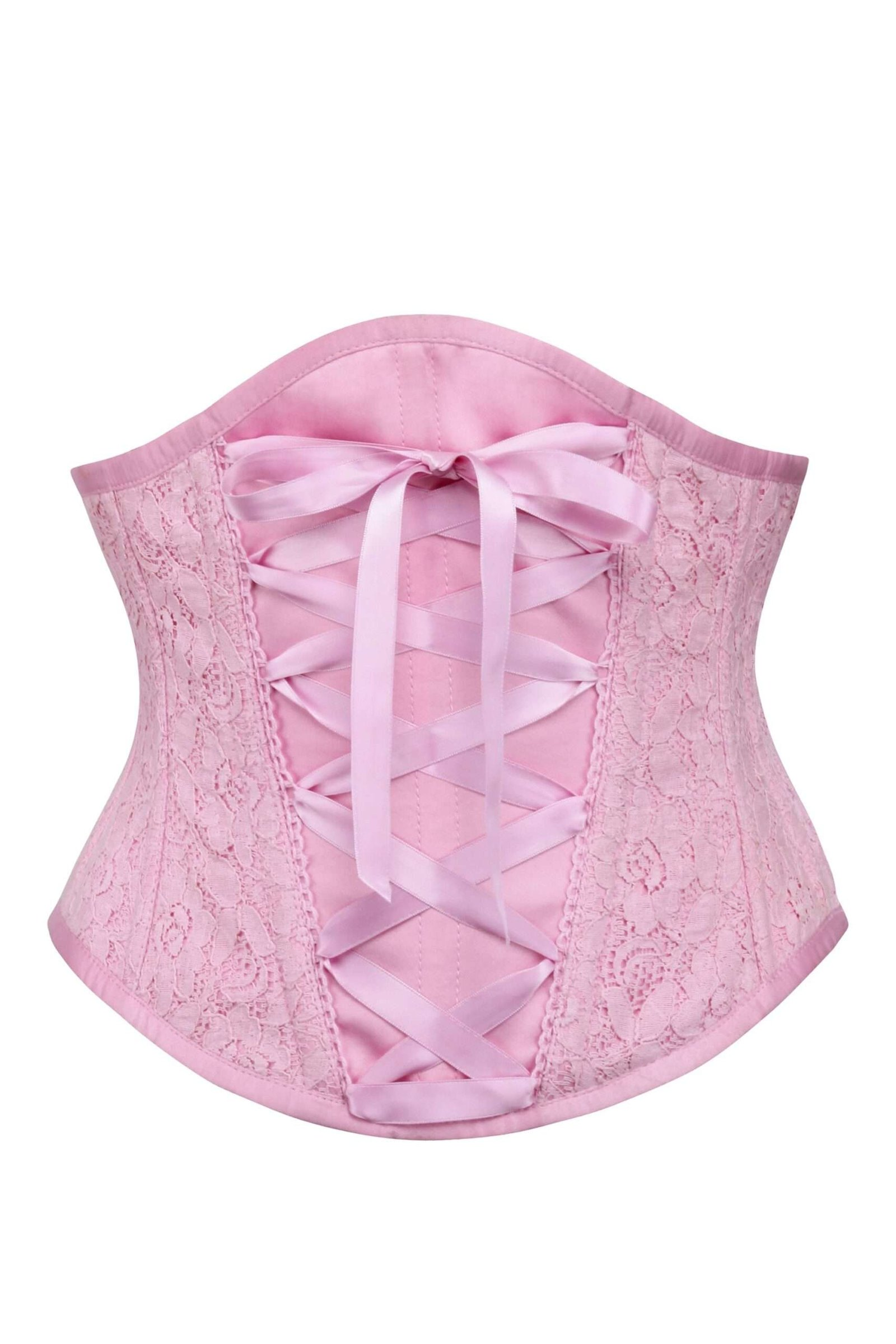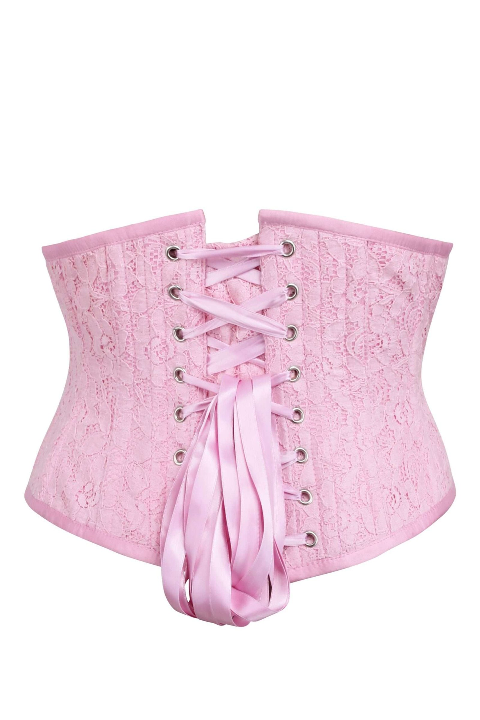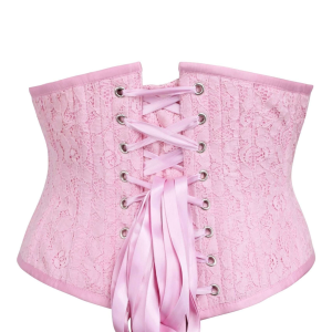 Pastel Pink Floral Lace Corset Belt – Feminine Victorian-Style Waspie for Layering